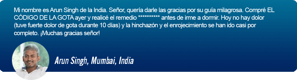 En mi guía paso a paso, “El Código de la Gota™ – Su guía para eliminar el dolor en 7 días o menos – ¡GARANTIZADO!” descubrirá un enfoque preciso para experimentar alivio de la gota a largo plazo.